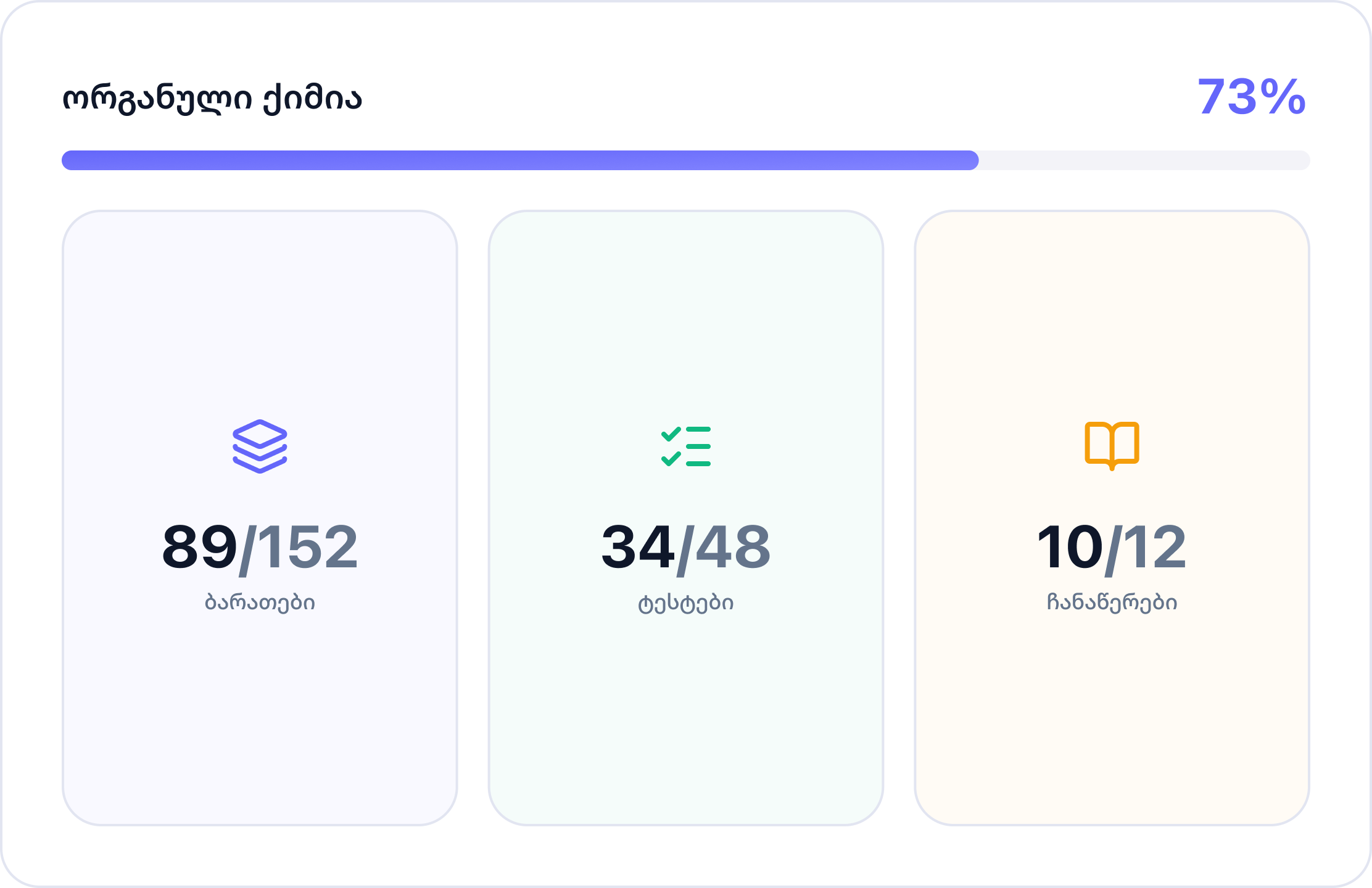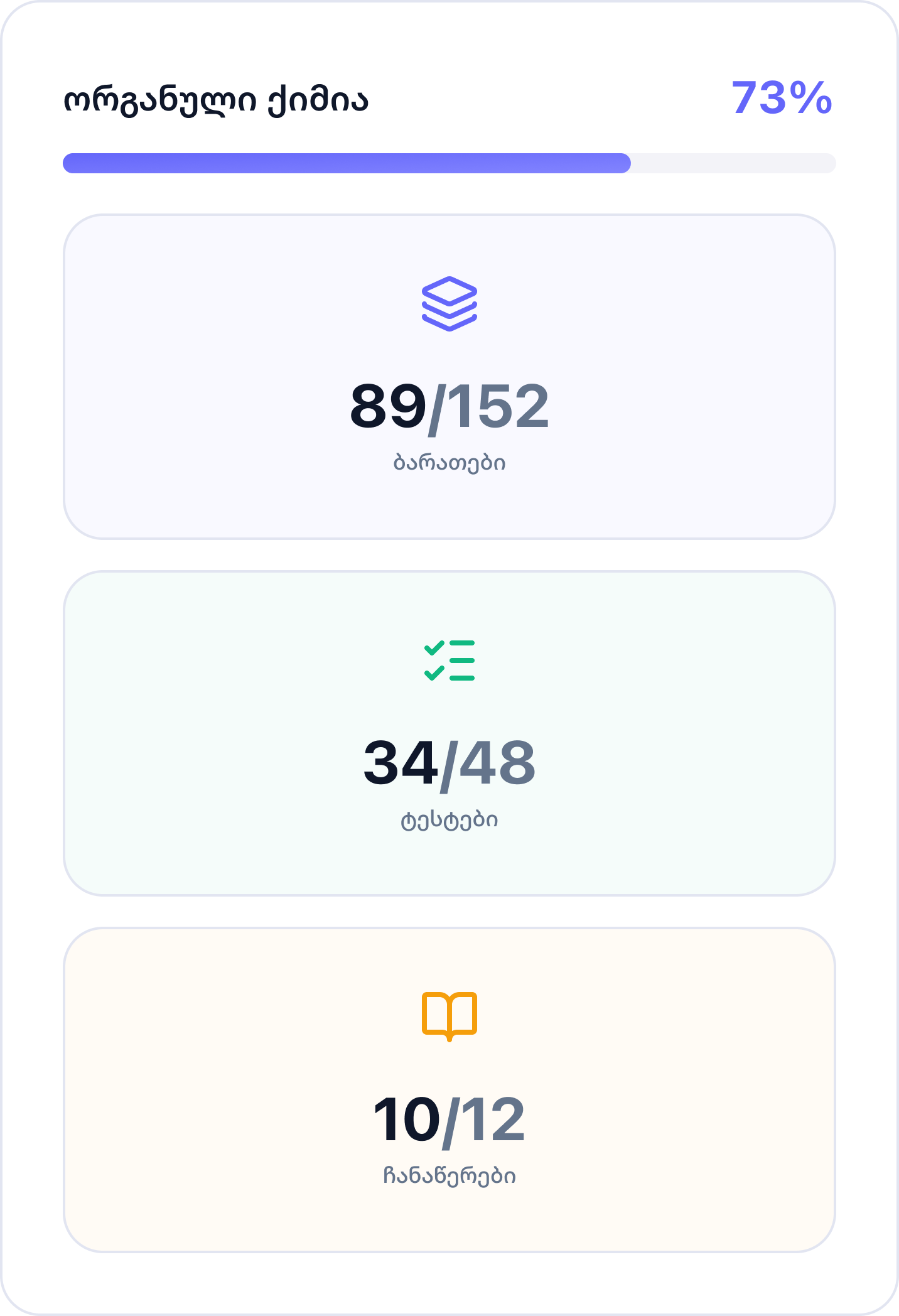 ადრე სულ პანიკა მქონდა გამოცდების წინ, იმიტომ რომ არ ვიცოდი, რეალურად რა მახსოვდა და რა არა. ეს პროგრესის ტრეკერი მეუბნება ზუსტად, სად მაქვს ჩავარდნა. სუპერ ფუნქციაა, მართლა!